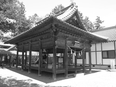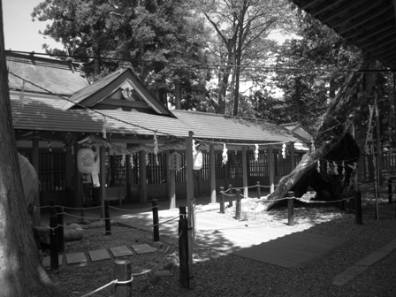 欅のすぐ近くにある神楽殿と諏訪神社をモノクロで撮ってみました。